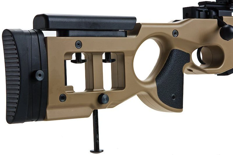 Dilengkapi dengan scope 3-9x, bipod, dan monopod, rifle ini memberikan stabilitas maksimal untuk tembakan jarak jauh. Adjustable cheek pad dan shoulder pad memastikan kenyamanan dalam penggunaan jangka panjang.