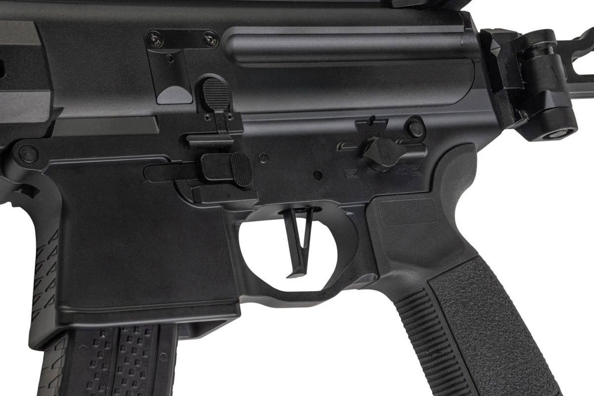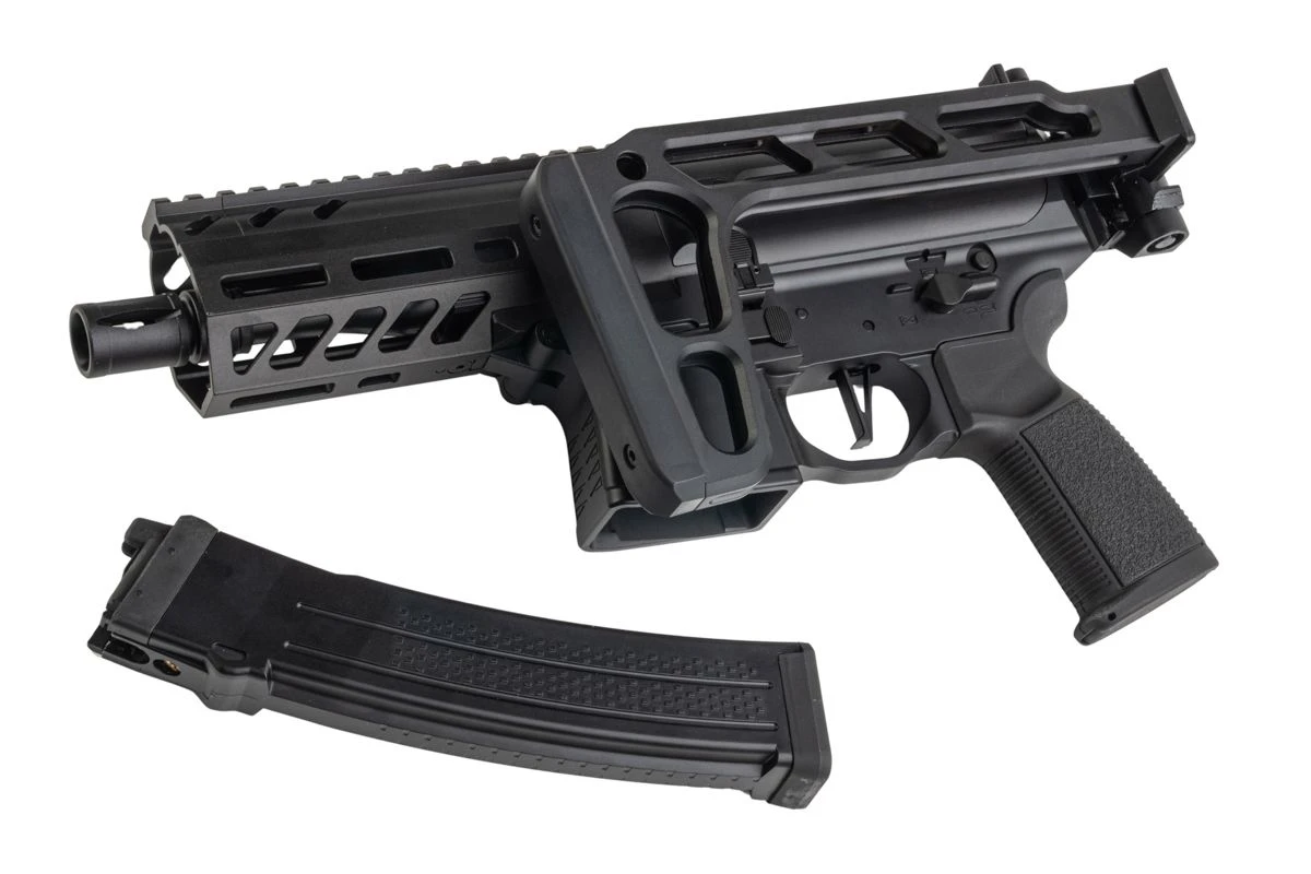 Varian MPX-K adalah versi compact yang dirancang untuk mobilitas tinggi tanpa mengorbankan performa. Dengan desain ergonomis ala AR-15, pengguna mendapatkan kontrol familiar dengan fitur ambidextrous lengkap.