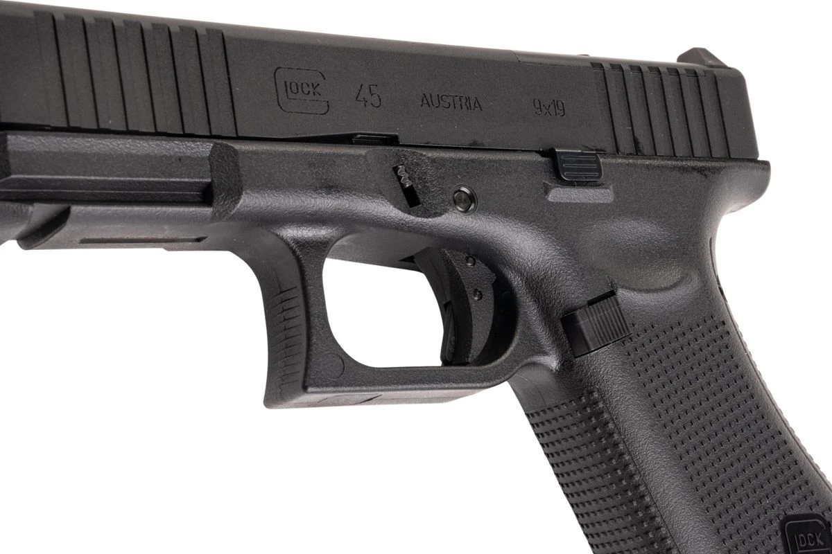 Ukuran full size Glock 45 memberikan kontrol lebih stabil saat menembak, cocok untuk pengguna yang menginginkan akurasi dan handling maksimal.