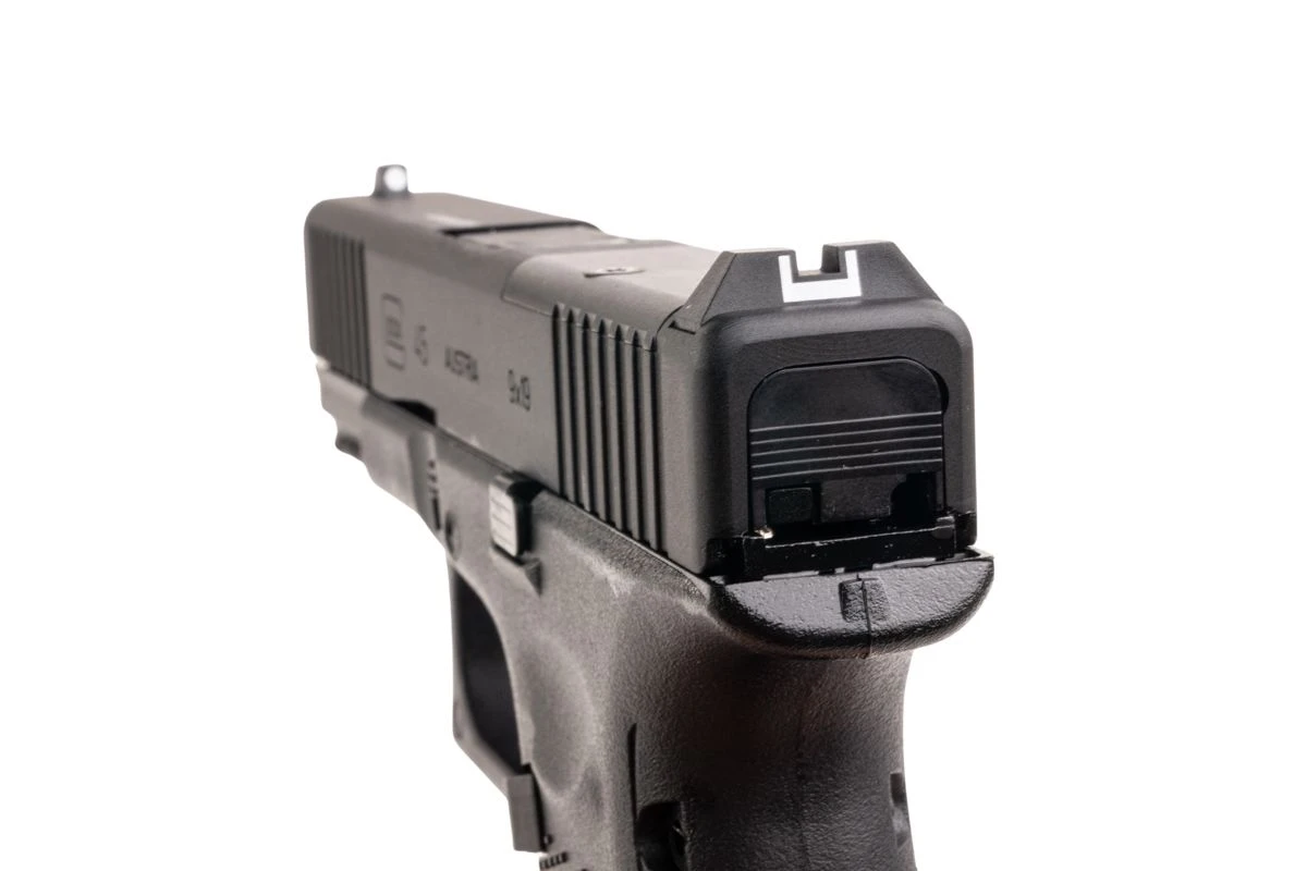 Sistem ambidextrous membuat pistol ini fleksibel digunakan oleh semua pemain. Sight U-notch khas Glock membantu target acquisition cepat dan presisi.