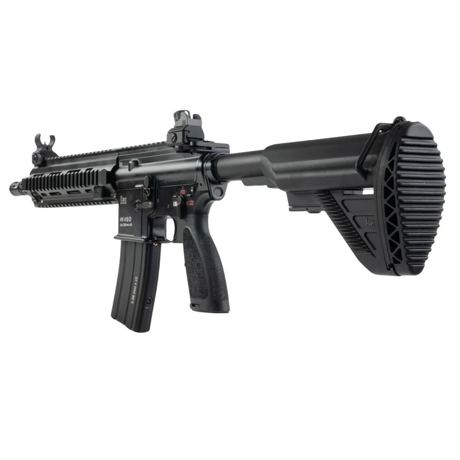 Versi airsoft HK416D GBBR ini merupakan hasil kolaborasi Heckler & Koch dan CYMA CGS, dengan lisensi resmi dari Umarex (Elite Force). Replika ini menghadirkan detail autentik dengan trademark dan rollmark H&K asli, serta dimensi yang setara dengan versi senjata asli (real steel).